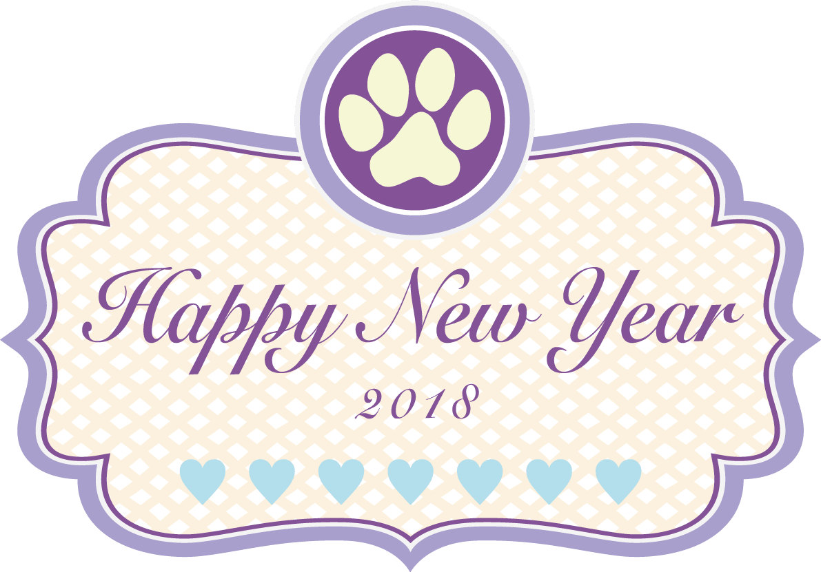 犬の肉球パープル飾り枠-おしゃれかわいい2018戌年文字いり
