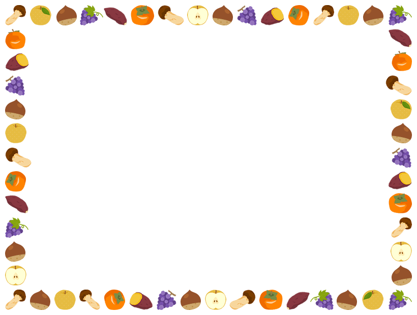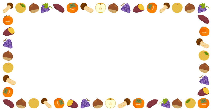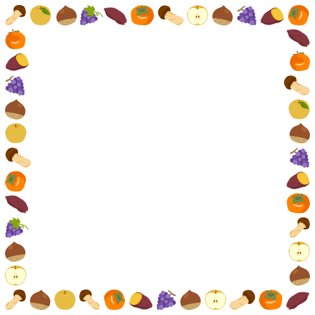 秋の味覚(マツタケ-クリ-カキ-ナシ-ブドウ-サツマイモ)のフレーム飾り枠