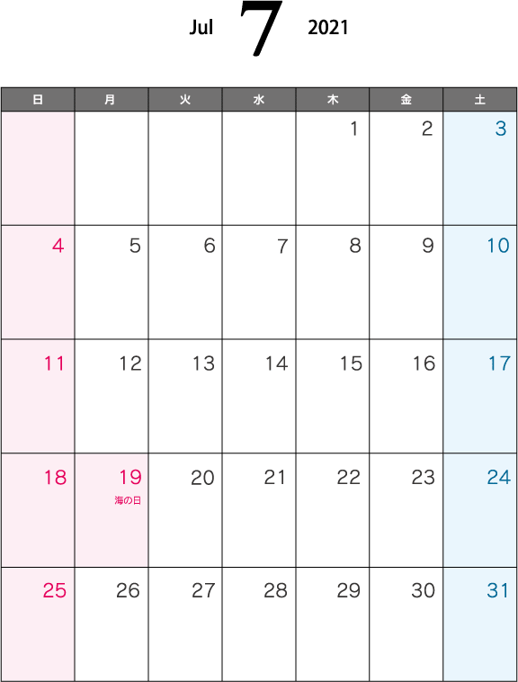 シンプルなデザインの2021年(令和3年)6月のカレンダー
