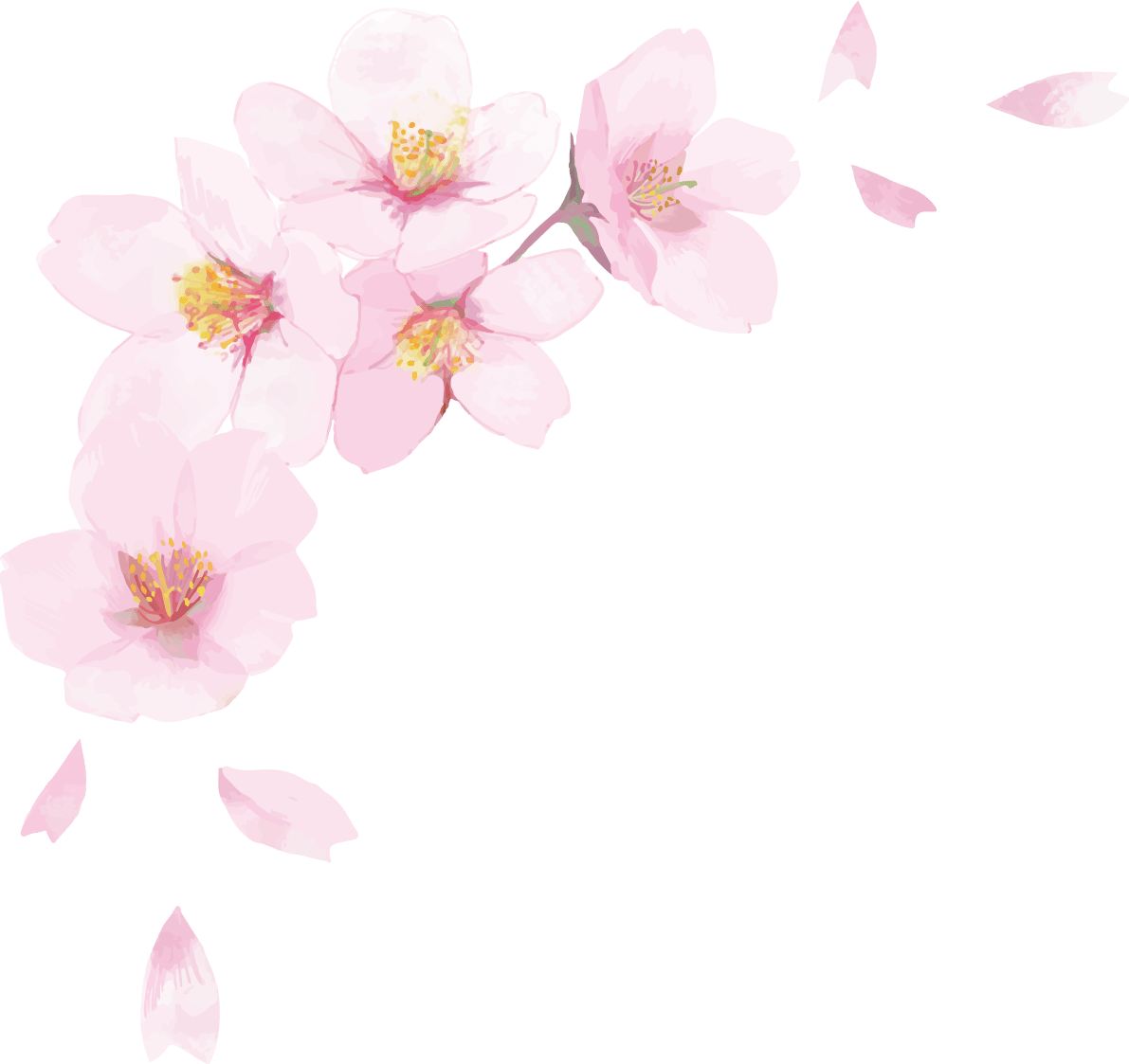 • リアル綺麗な桜の枝イラスト-咲き終わり右下角用飾り背景なし(透過