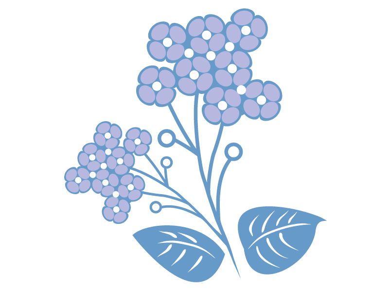 おしゃれ綺麗な薄い水色青系のアジサイイラスト(梅雨