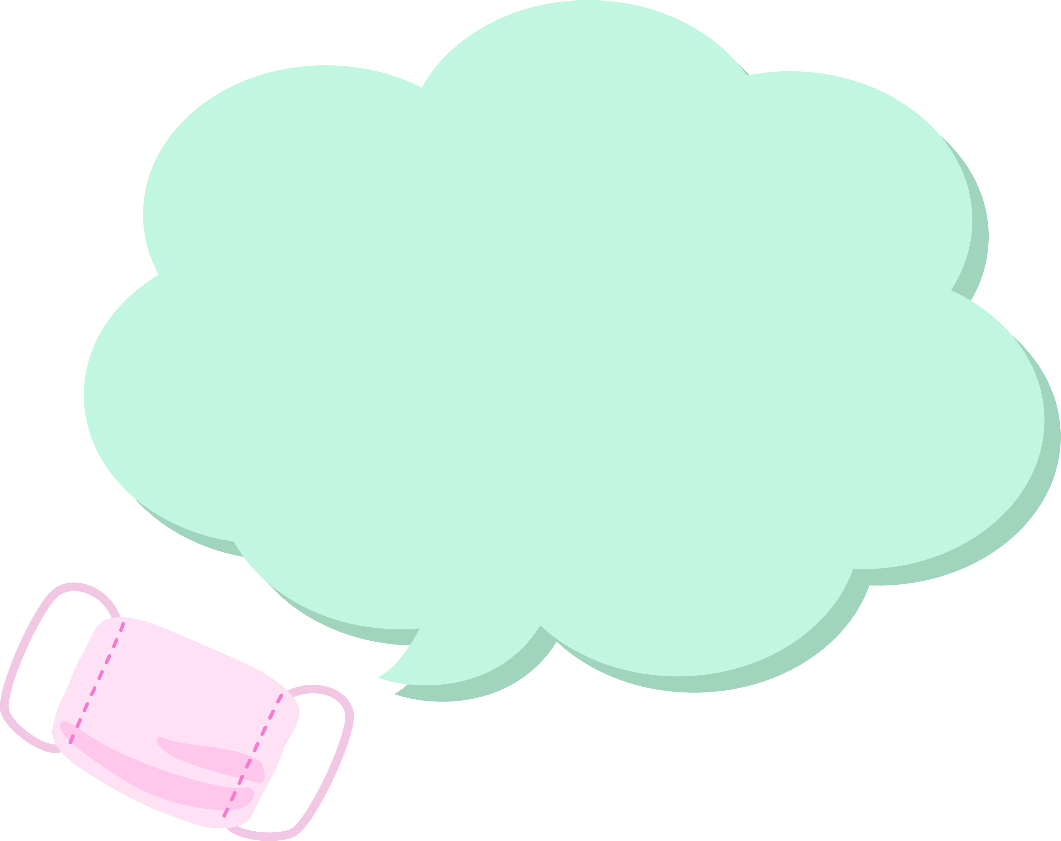 ピンク色のマスクの緑色のもこもこ吹き出しフレーム飾り枠