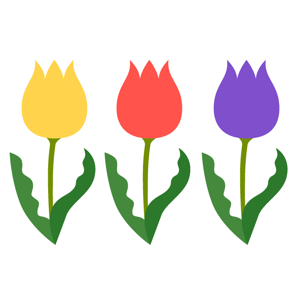 • リアル綺麗チューリップイラスト(背の順で並ぶピンク-白-黄-赤の4輪花