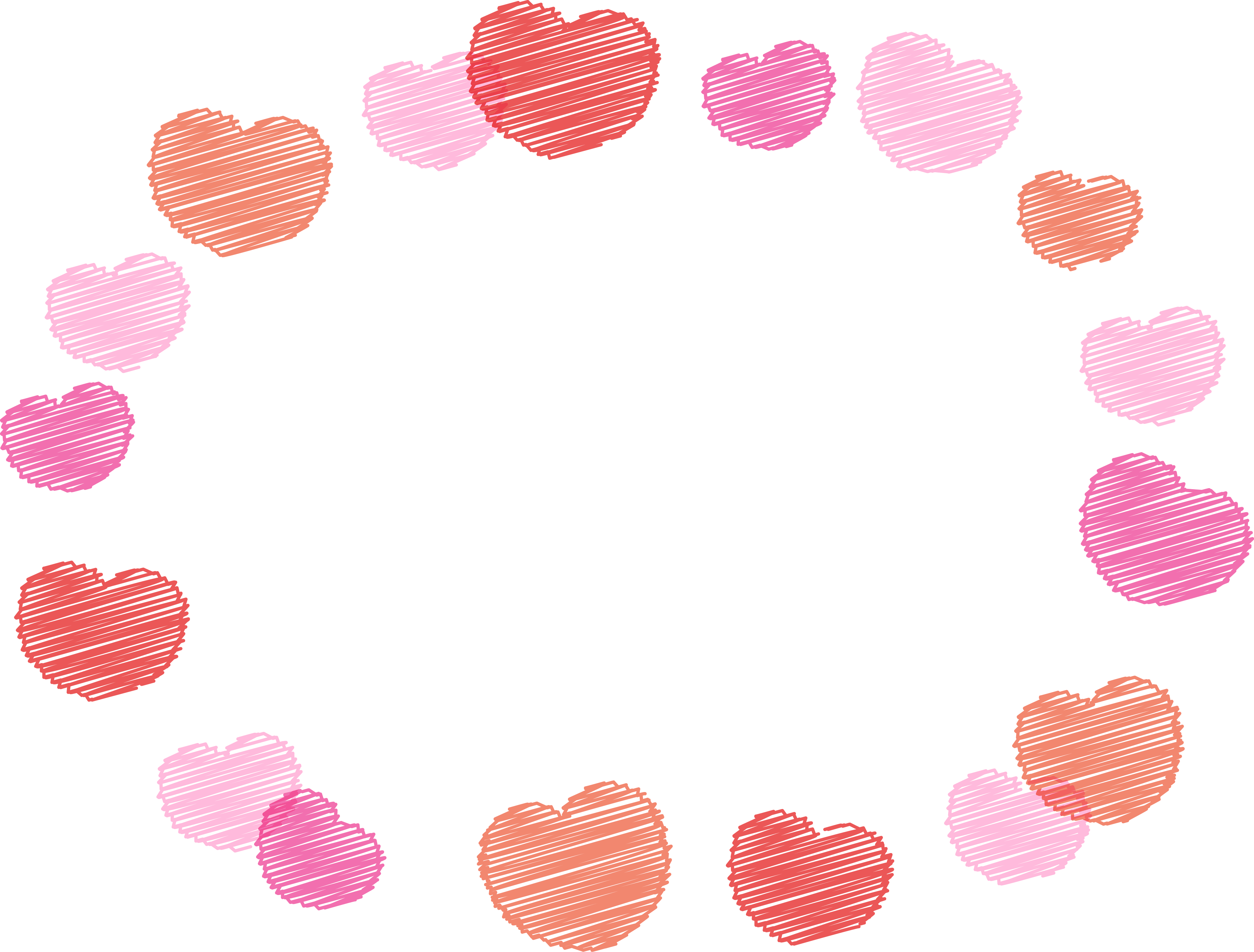 落書き風ピンクハートのバレンタイン楕円フレーム飾り枠