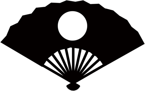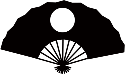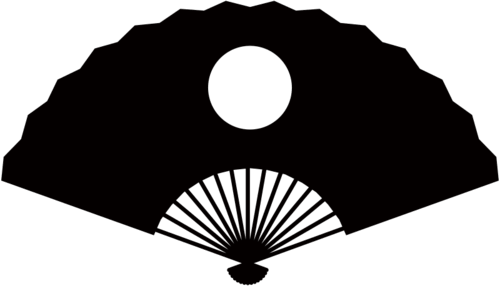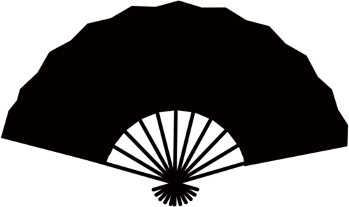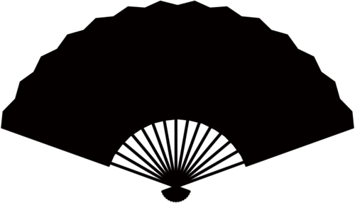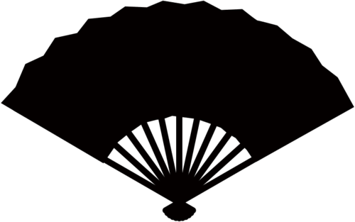 ネズミと扇子と梅の花の白黒フレーム飾り枠