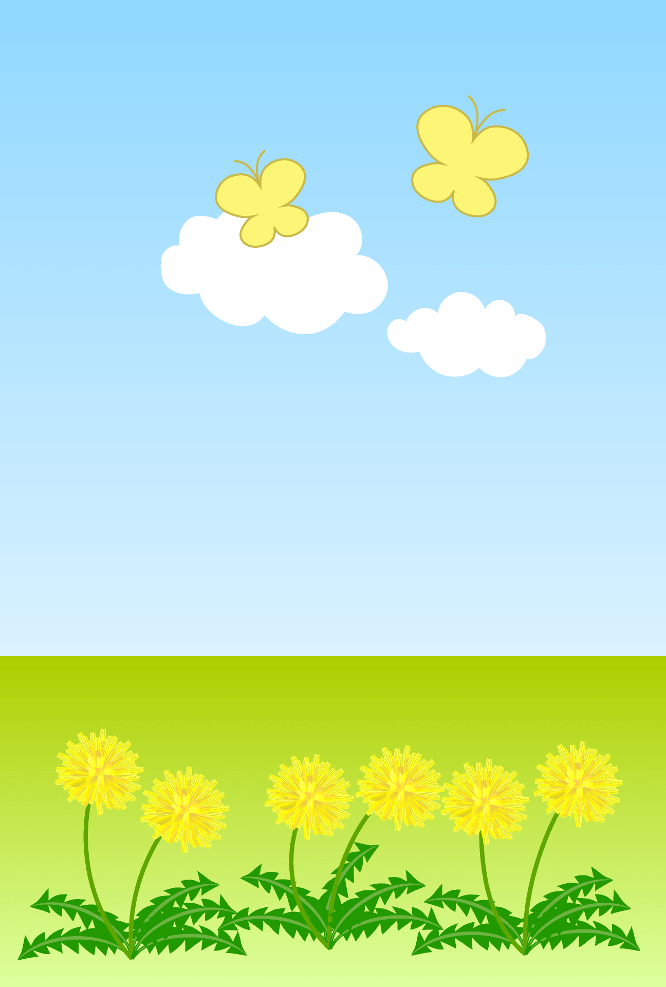 たんぽぽやつくしと蝶々