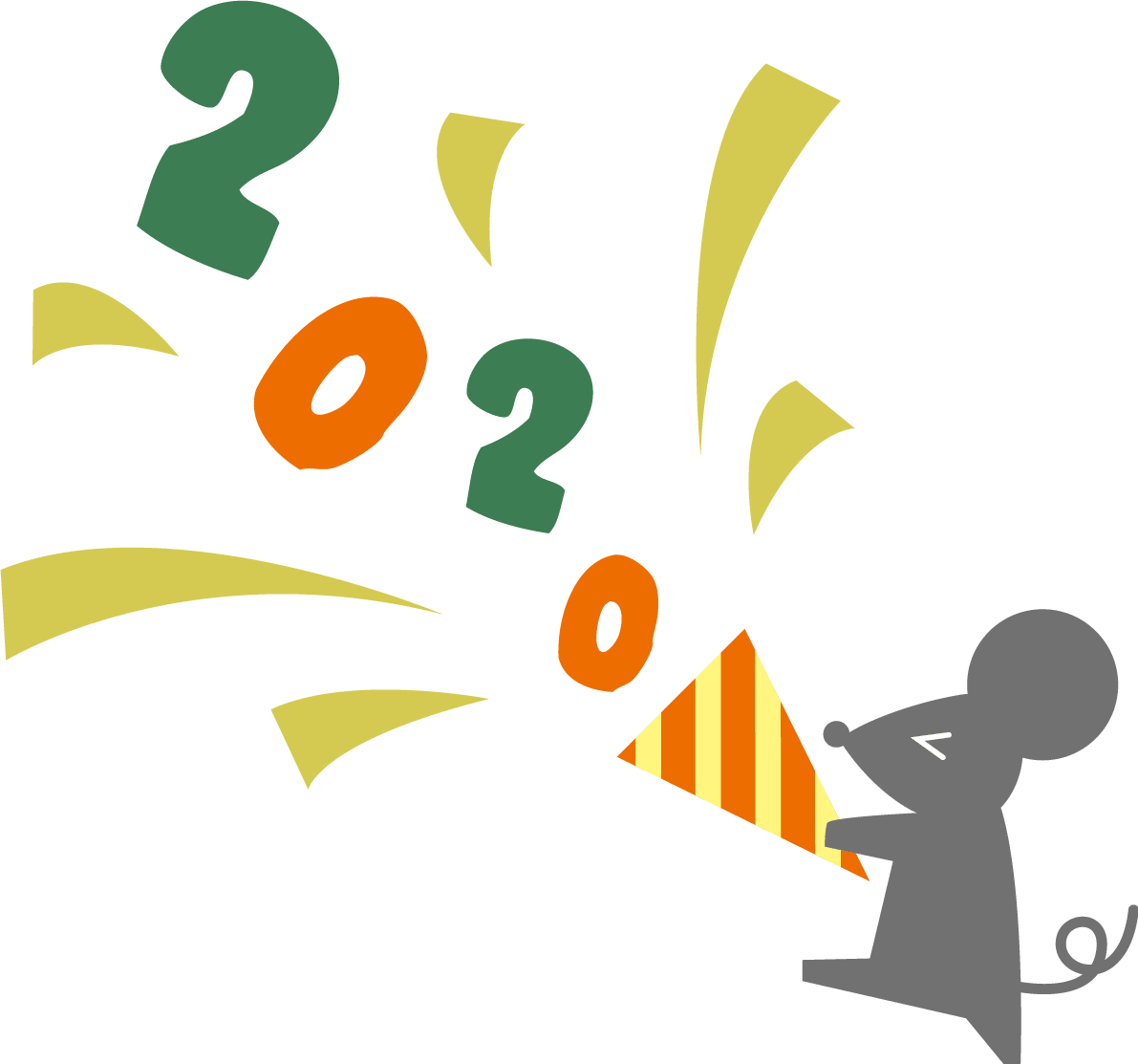 ねずみ(ネズミ-鼠)が持つクラッカーから飛び出す2020文字-子年