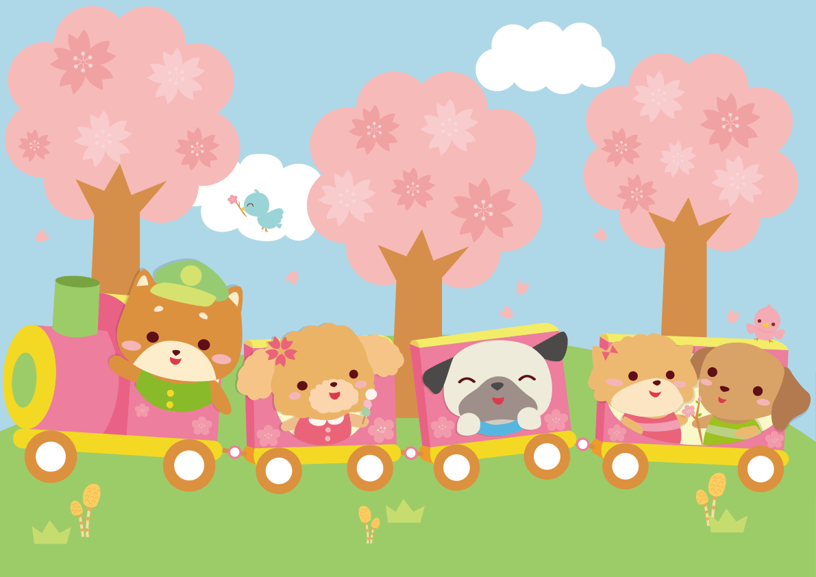 春の汽車に乗る犬たちの動物保育園-背景