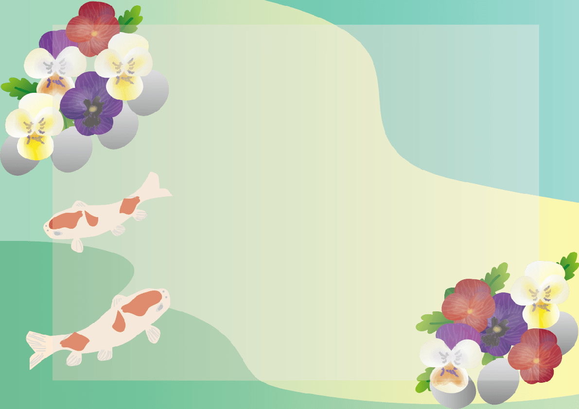 パンジー-ビオラ(和風)(鯉と池青と緑)花のフレーム