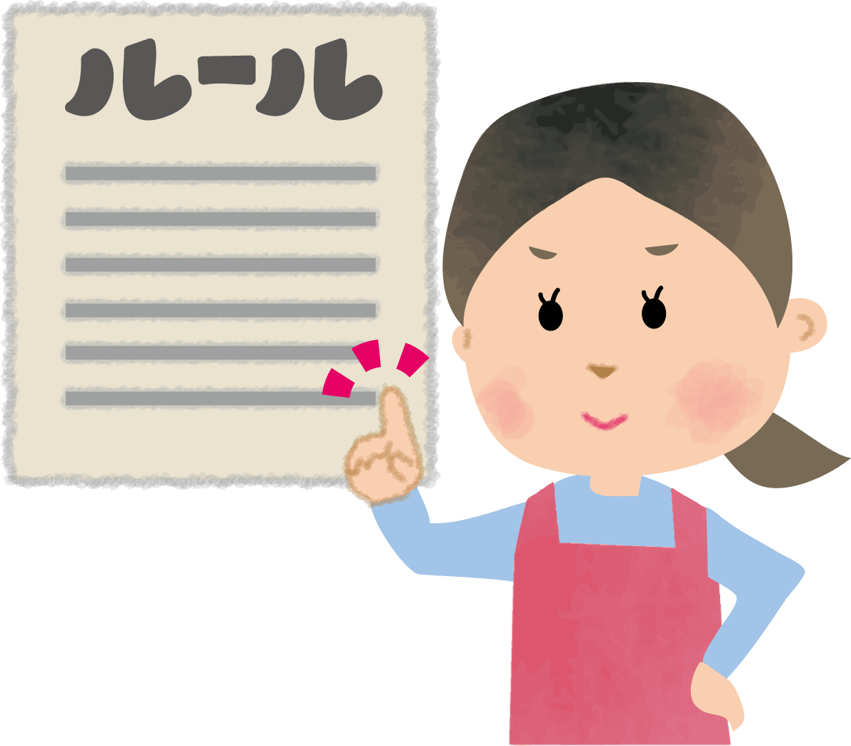 『ルール』と指差し確認する保育士(女性)