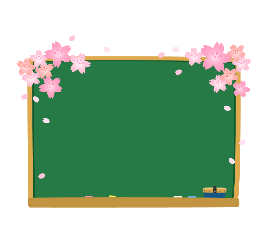 卒業証書と桜の水色見出し付きフレーム飾り枠