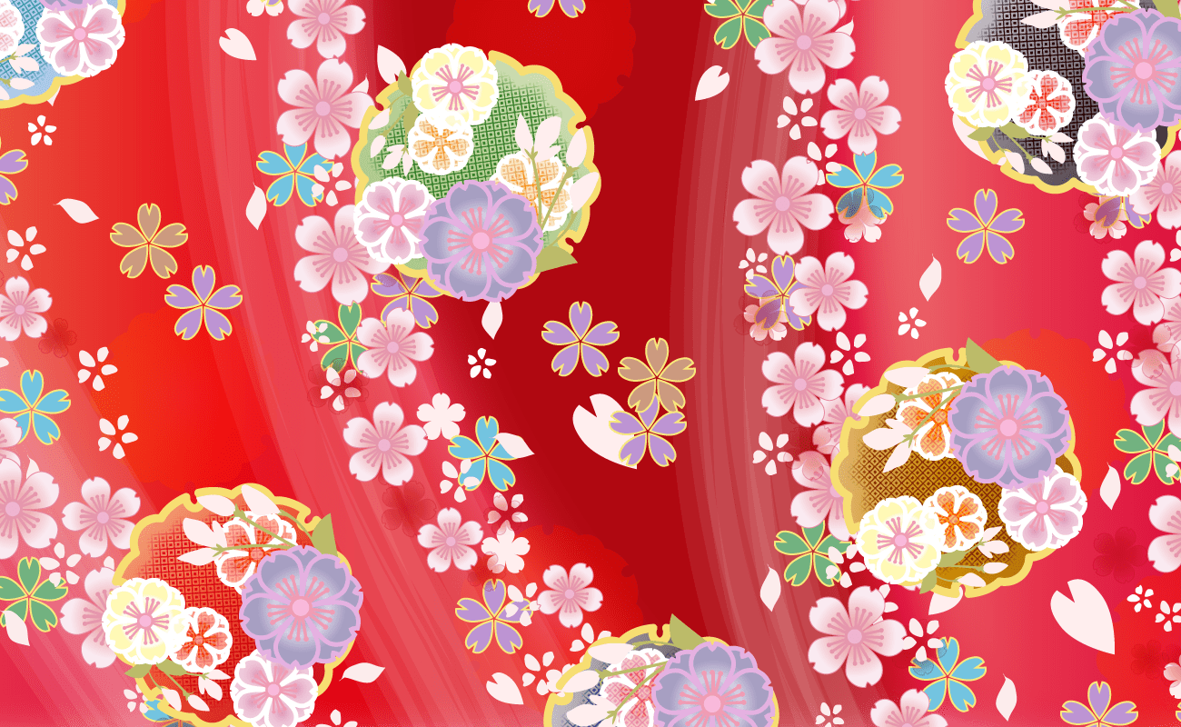 着物(和風桜柄)正面鮮やか赤系-背景