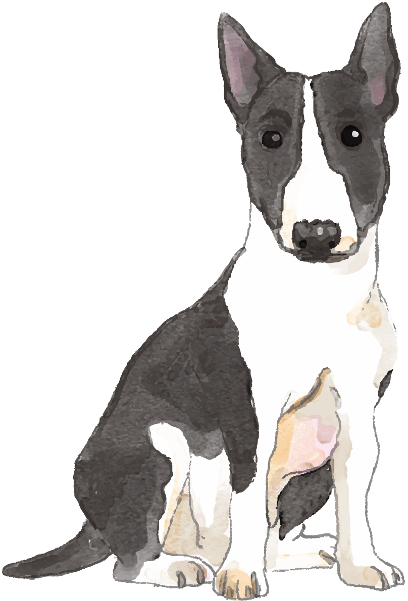 ミニチュア-ブル-テリア(座り姿)犬のリアルかっこいい