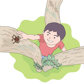 木に登って虫を捕る少年