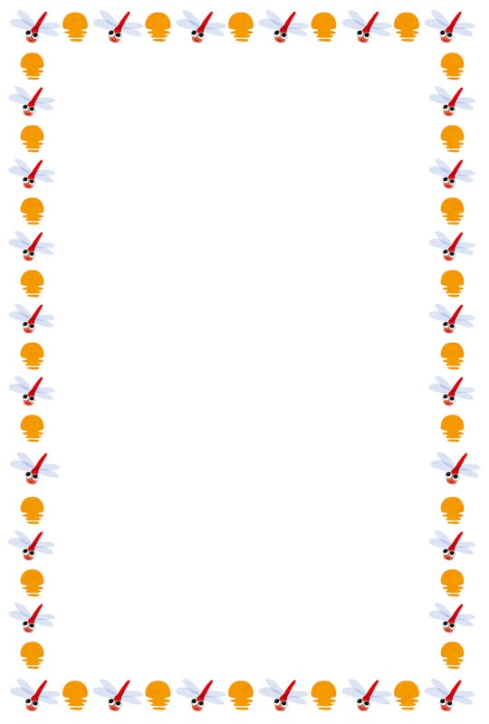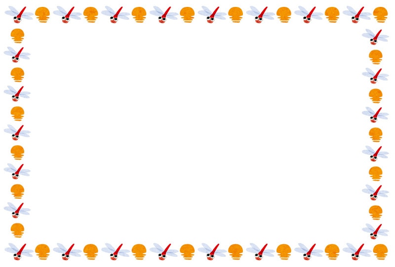 • 秋-赤とんぼと落ち葉の囲みフレーム飾り枠