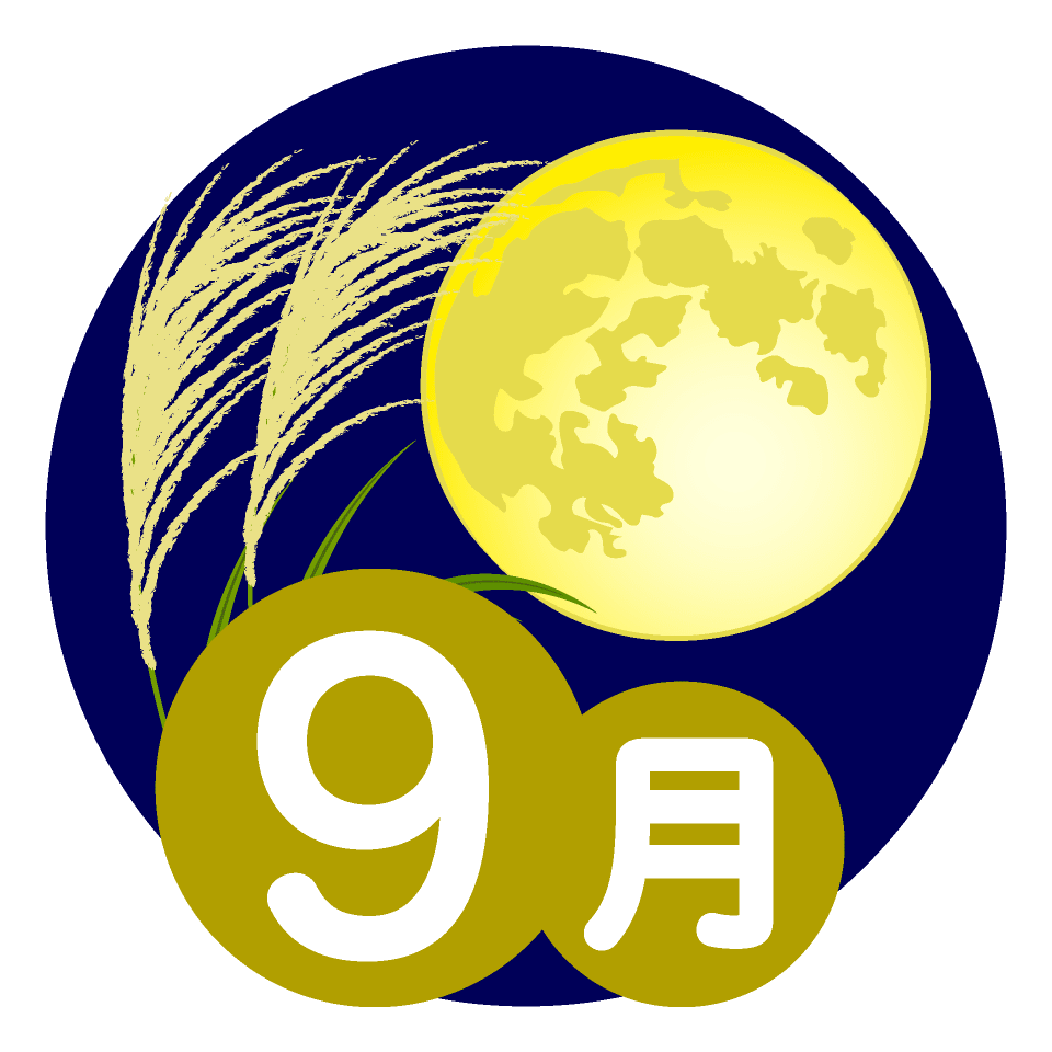 うさぎとススキと紅葉の円形囲みフレーム-枠