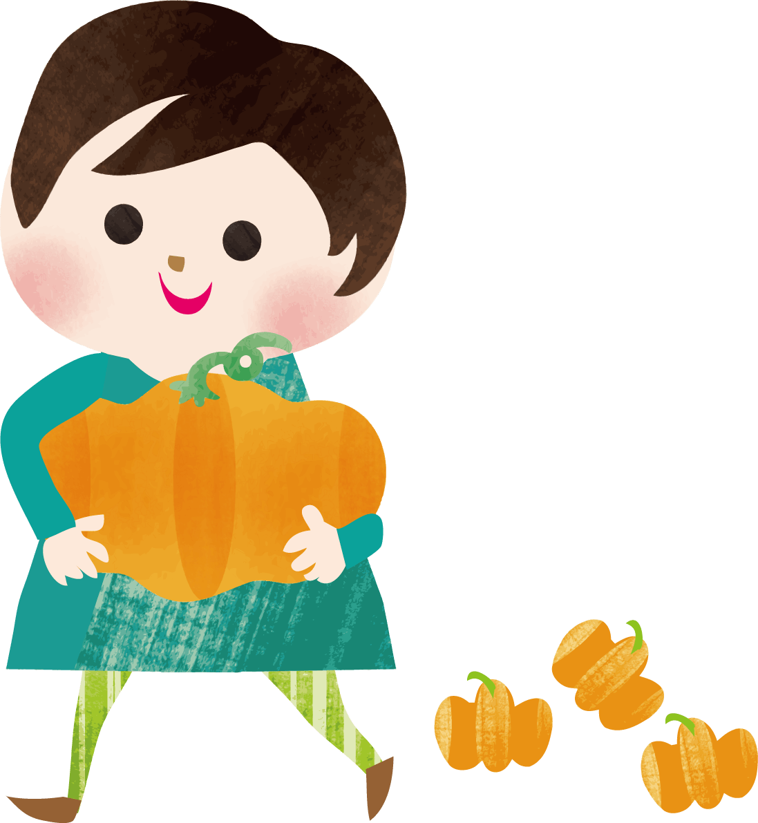 かぼちゃを運ぶ子ども-かわいいハロウィン
