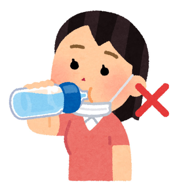 マスクをめくって-あごにかけて水分補給をする人(女性)