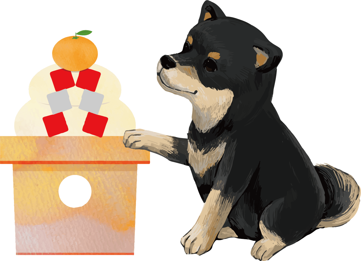 柴犬-黒毛の豆柴(鏡餅)戌年2018干支