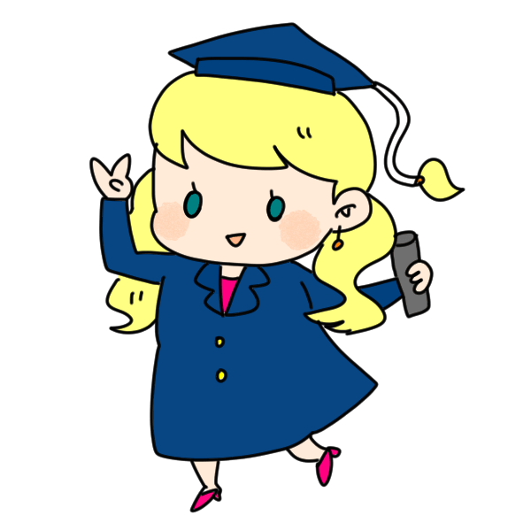 卒業証書と桜の水色見出し付きフレーム飾り枠