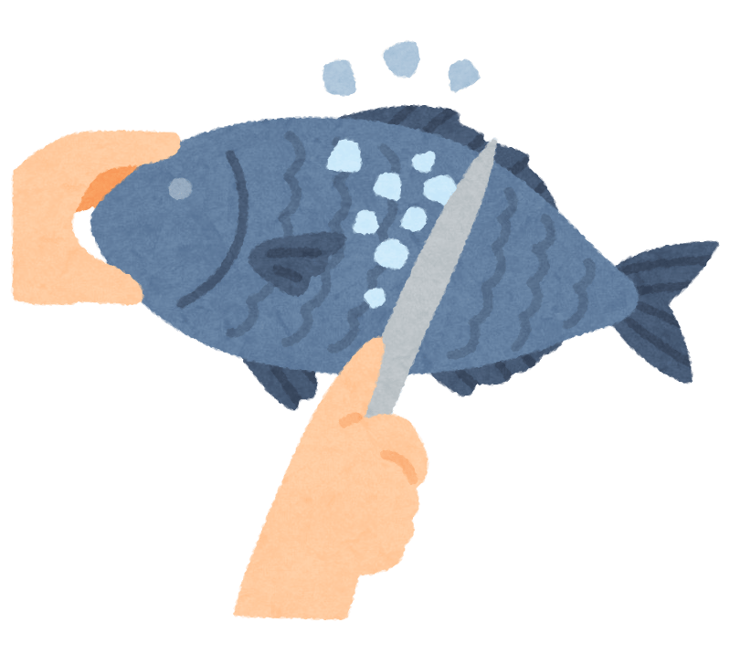魚の鱗をとっているイラスト(包丁)