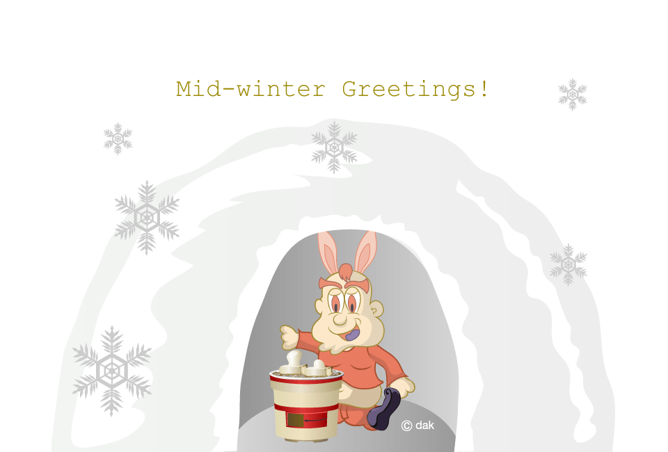 ピンクの雪うさぎ親子の寒中見舞いはがき