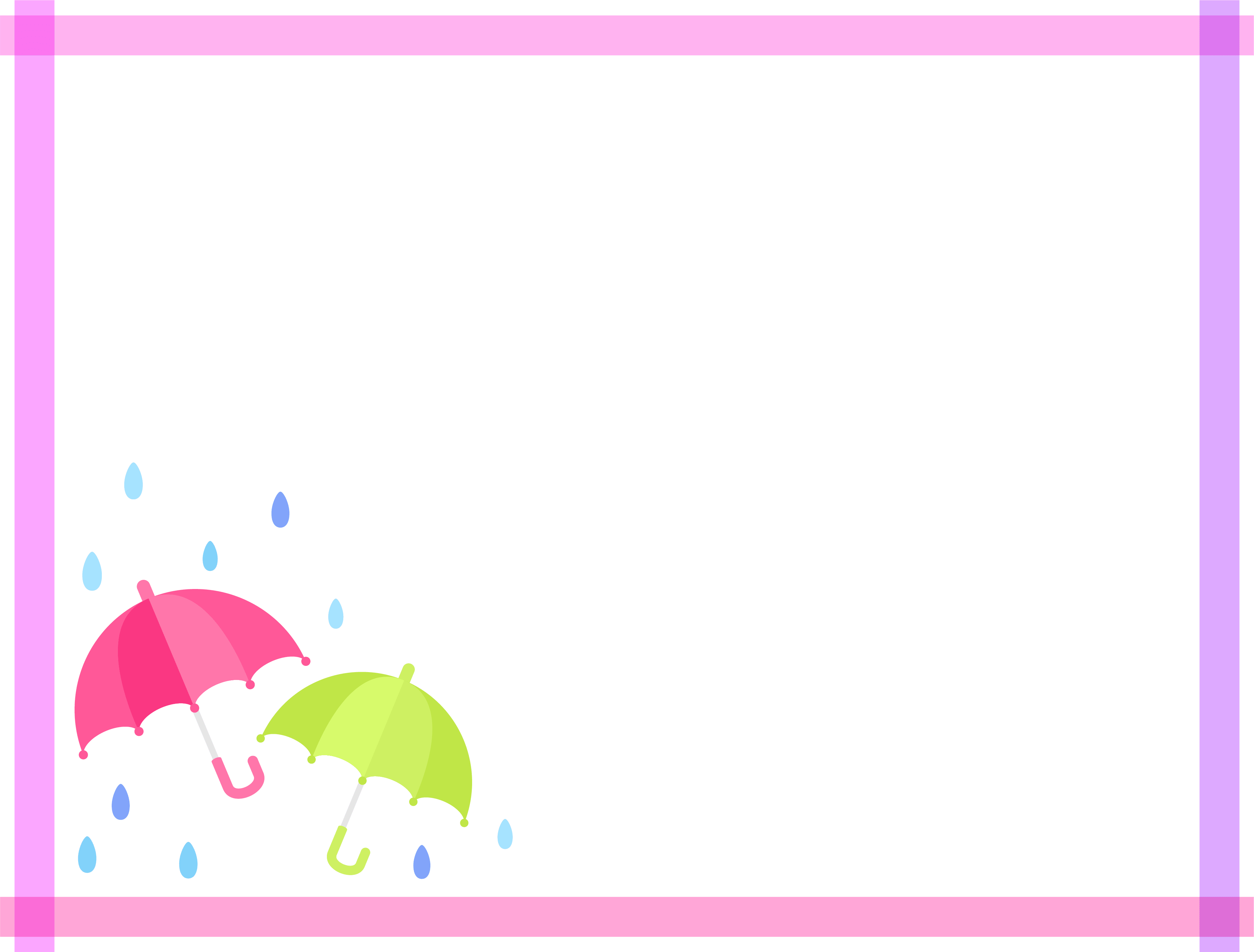 ピンク色と黄緑色の傘のマスキングテープ風フレーム飾り枠