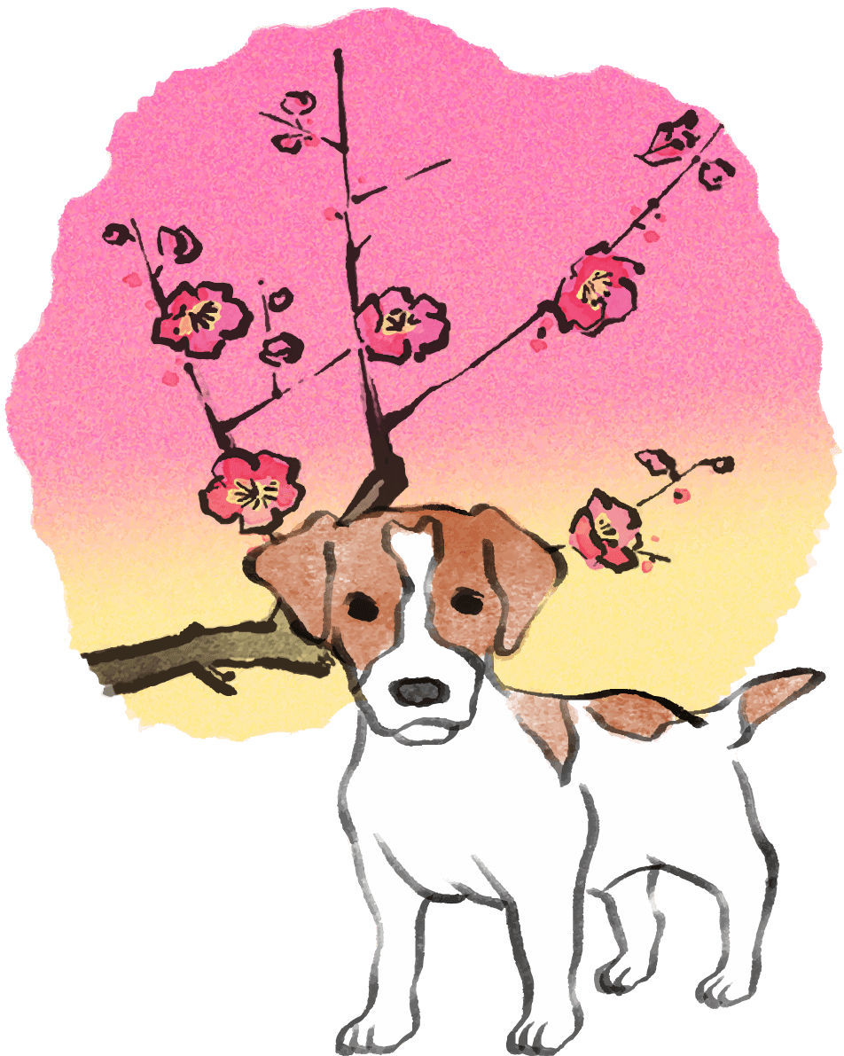 戌年-ジャック-ラッセル-テリア和風(梅)2018干支イラスト-正面