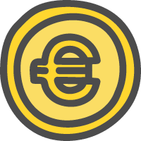 ユーロコイン-€マークのかわいい手描きアイコン<金色-ゴールド>