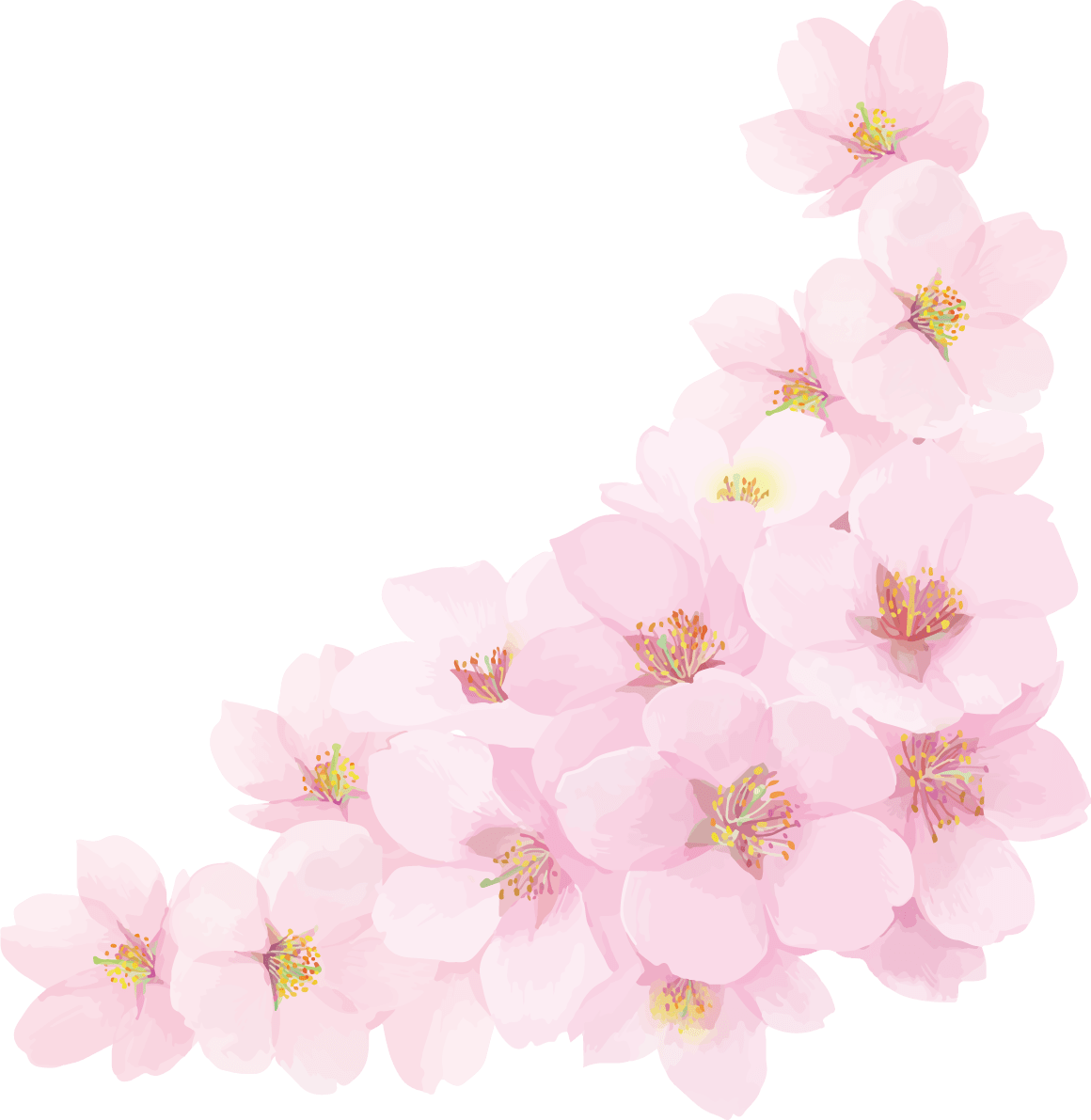 リアル綺麗な桜-花びらイラスト-満開右下角用飾り背景なし(透過