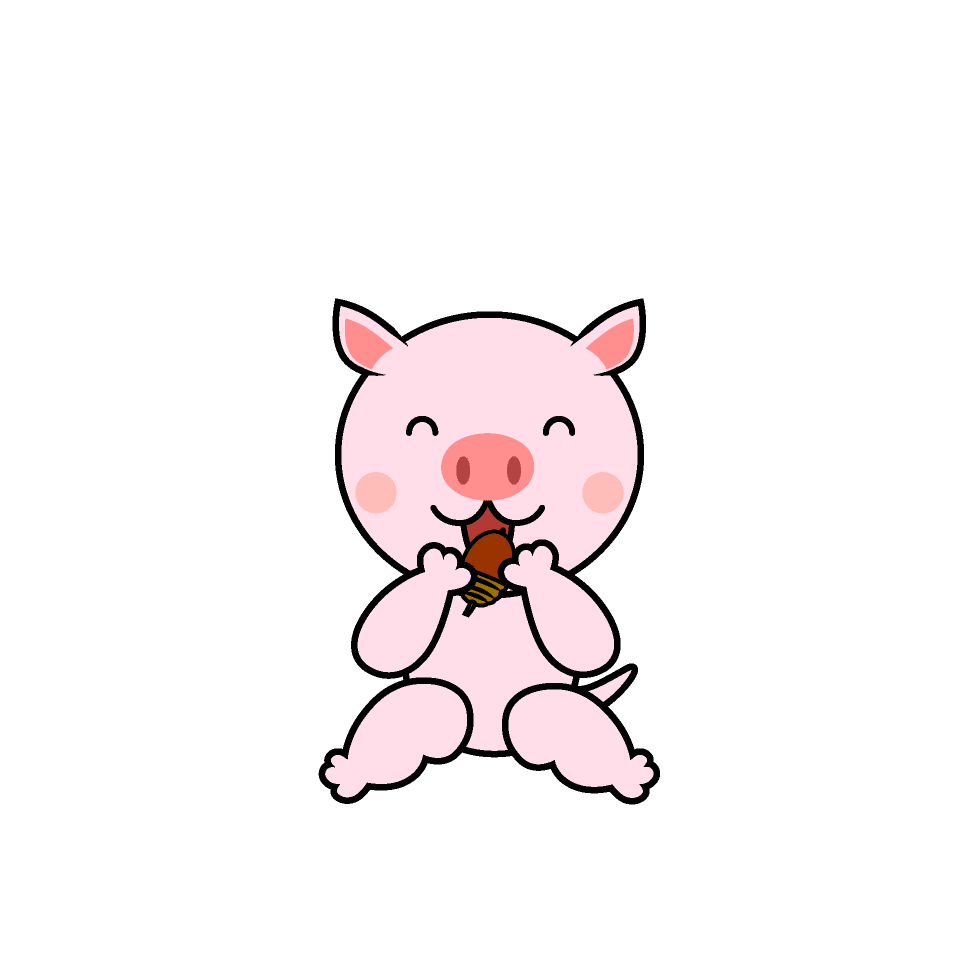 ドングリを食べる豚キャラ