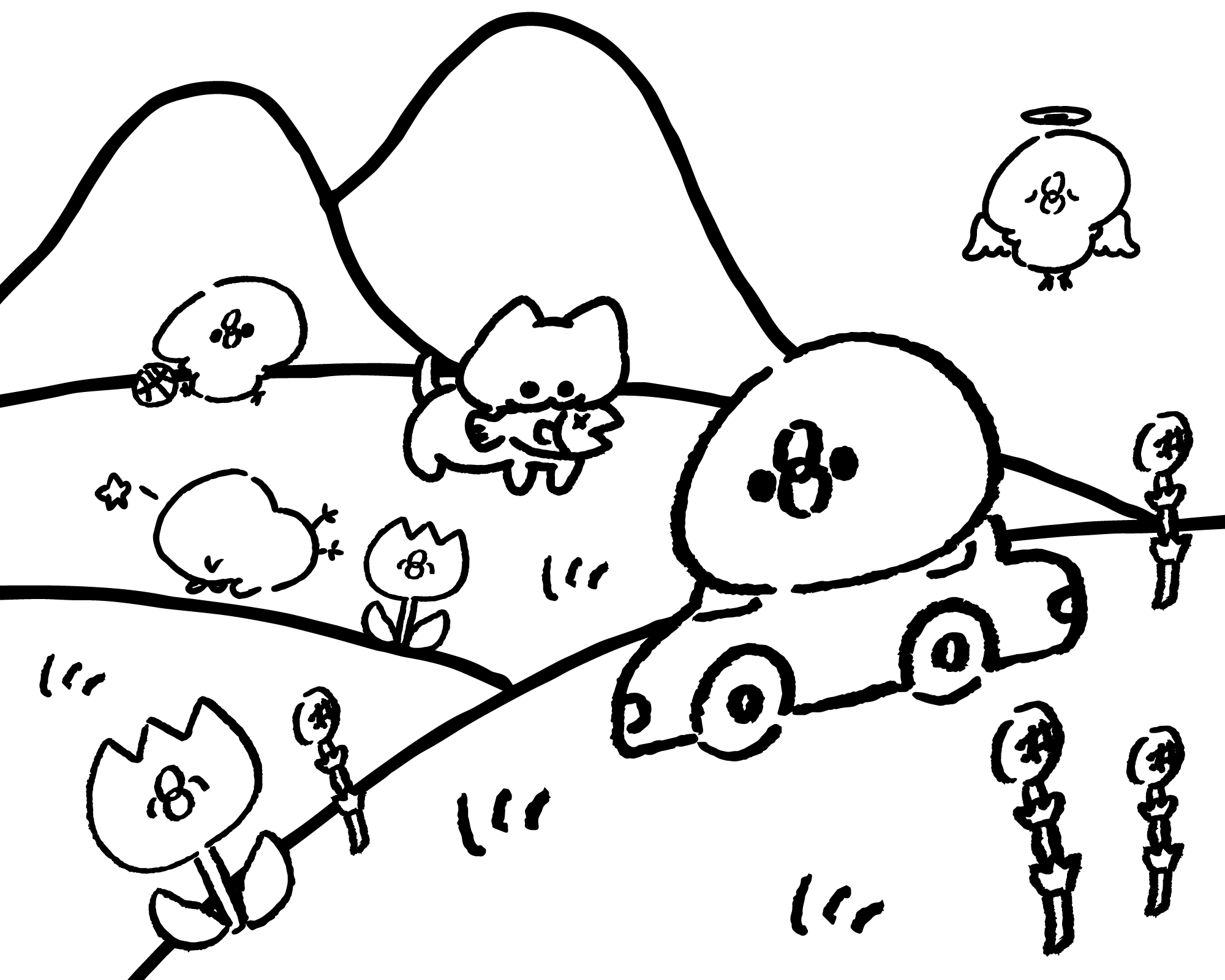 ハロウィン塗り絵(キノコとかぼちゃおばけ)イラスト(大人-高齢者向け