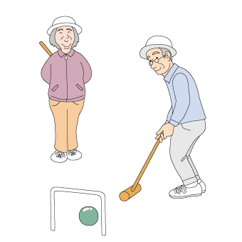 ゲートボールをする祖父母