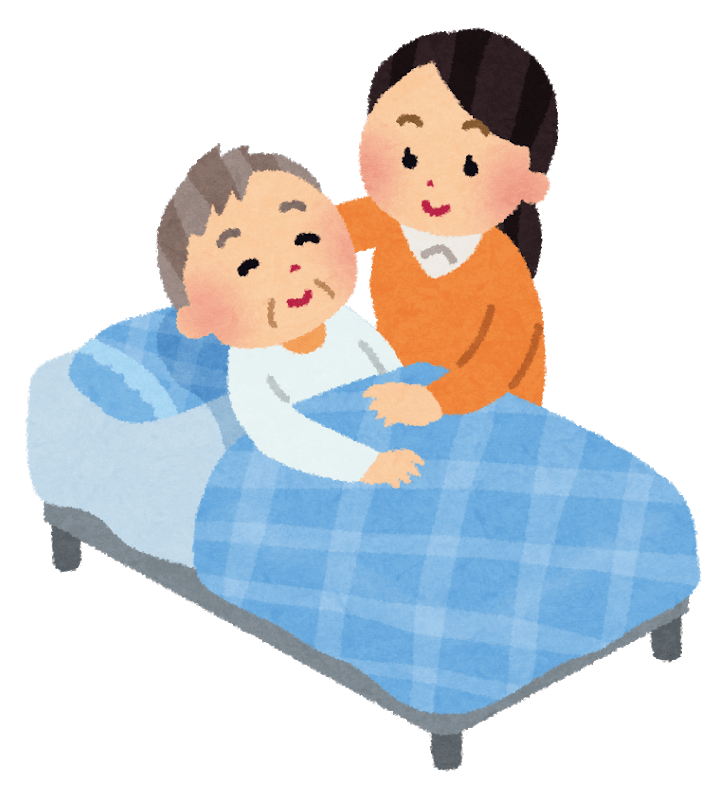 介護(ベッドに寝るおばあさん)